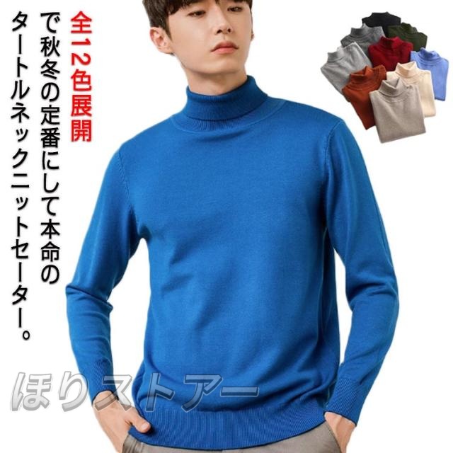 カラフル12色展開 ニット セーター メンズ タートルネック リブニット ハイネック 長袖 シンプル トップス ニットセーター 大きいサイズ メンズニット メンズセーター カットソー 厚手 秋冬 カジュアル 新作 通勤 お洒落 無地