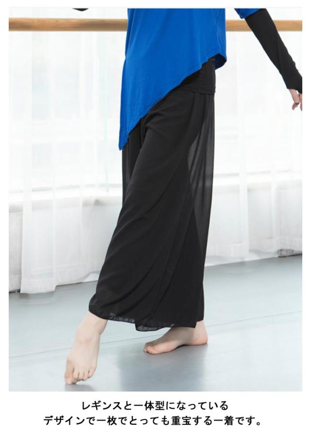 レッスンウェア パンツ ガウチョ 部屋着 ワイドパンツ レギンス付き 美脚 無地 シースルー スカンツ ダンス ヨガパンツ スカーチョ レッスンパンツ 社交ダンス ラテンダンス ヨガウェア シフォン フレアパンツ 春夏 ダンスウェア 踊りパンツ