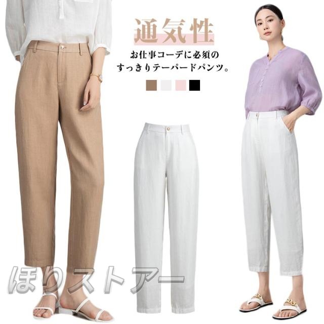 きれいめ 7分丈 体型カバー ウエストゴム レディース クロップド丈 ハイウエスト 通気性 ズボン 春夏 麻パンツ 薄手 クロップドパンツ 接触冷感 スラックス リネンパンツ 涼しい ゆったり テーパードパンツ リネン混 低身長 通勤 通学 無地 大人 おしゃれ