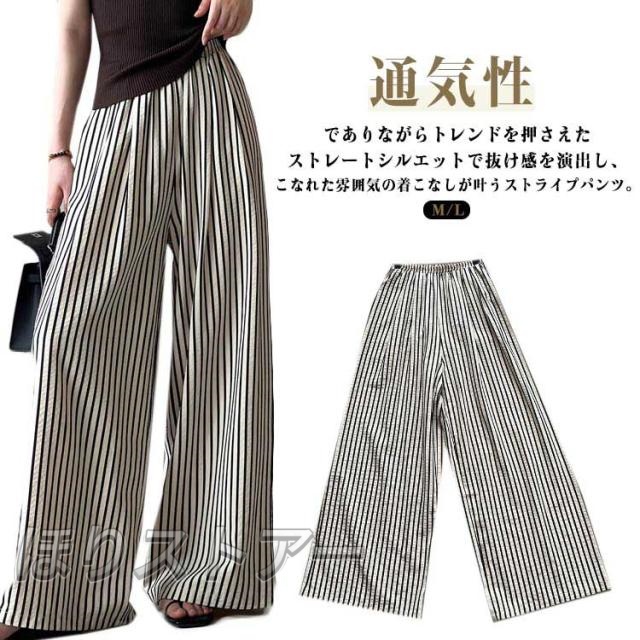 ワイドパンツ ワイドパンツ レディース 春服 ストライプ柄 パンツ きれいめ 通気性 ストライプパンツ ストレートパンツ 薄手 春 涼しい 綿麻風パンツ ウエストゴム ゆったり 体型カバー ハイウエスト 夏服 ズボン 通勤 通学 春夏コーデ 大人 カジュアル おしゃれ 美脚パンツ