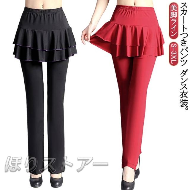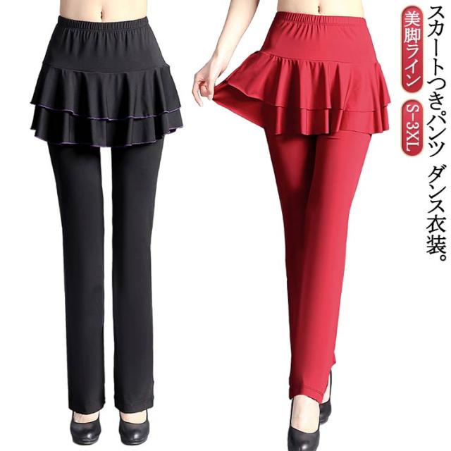 ダンス衣装 レディース ダンス スカート付き 社交ダンス ミニスカート ジャージ ダンスパンツ パンツ ブーツカット 体型カバー スカパン フィットネス フラメンコ ダンスパンツ ベリーダンス 美脚パンツ 衣装 ヨガウェア ヨガパンツ レッスンパンツ レギンス ストレッチ