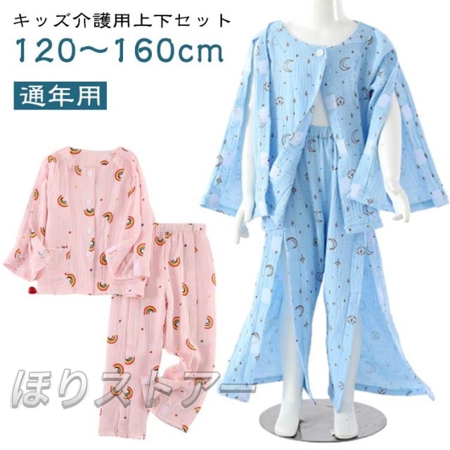 ズボン 介護用パジャマ 上下セット トップス ガーゼ 女の子 春 ボトムス パジャマセット 秋 ガーゼ 子供用 通年用 男の子 パジャマ 長袖 マジックテープ介護 フルオープン 介護用ズボン 着脱簡単 夏用 全開 要介護 術後 入院
