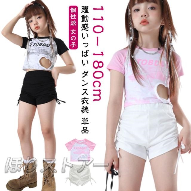 ショートパンツ ダンスパンツ 半袖 ショーツ Tシャツ ダンス衣装 単品 ダンス衣装 女の子 黒 チア キッズダンス かわいい 練習着 白 かわいい 舞台 hiphop K-pop 団体服 演出服 ストリートダンス ジャズダンス ヒップホップ