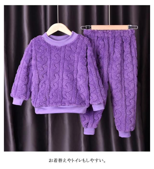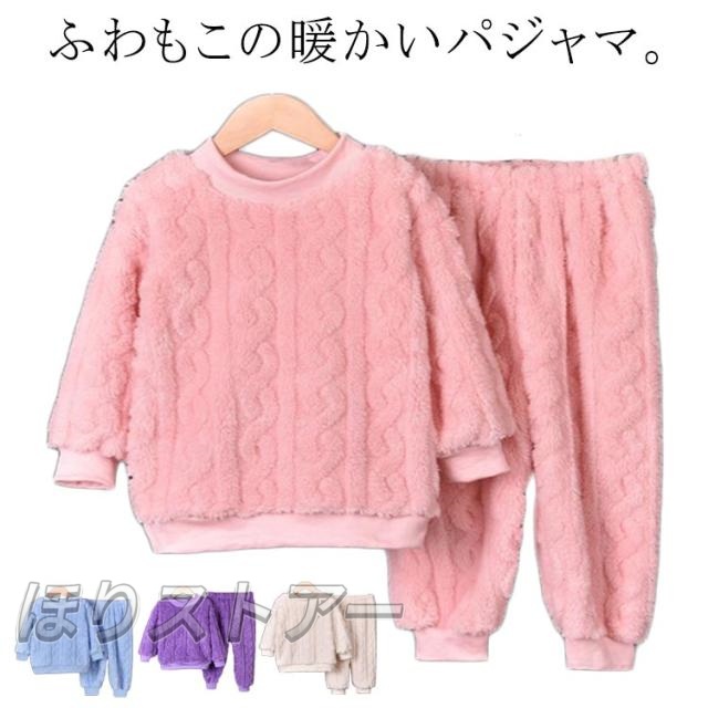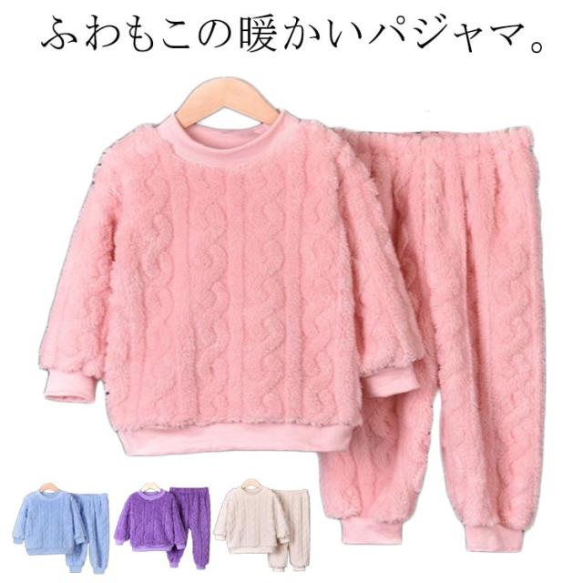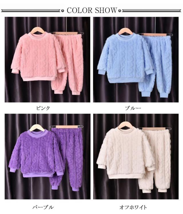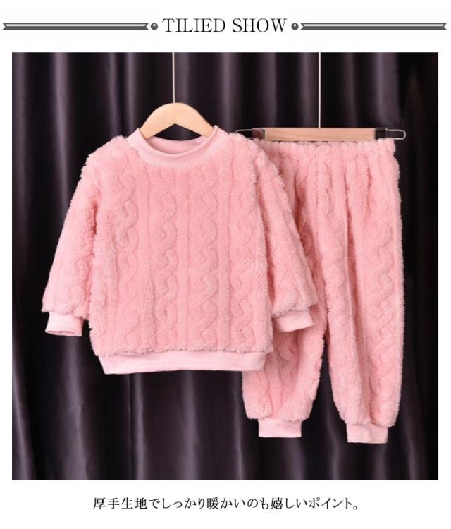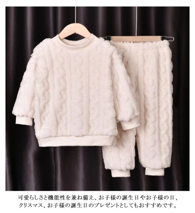 パジャマ キッズ 長袖 長ズボン 冬 子供 トップス ボトムス パンツ 2点セット フランネルパジャマ 秋冬 ルームウェア 男女兼用 部屋着 防寒 保温 冷え対策 ナイトウェア かわいい おしゃれ もこもこ ウエストゴム 厚手 無地 男の子 女の子 送料無料