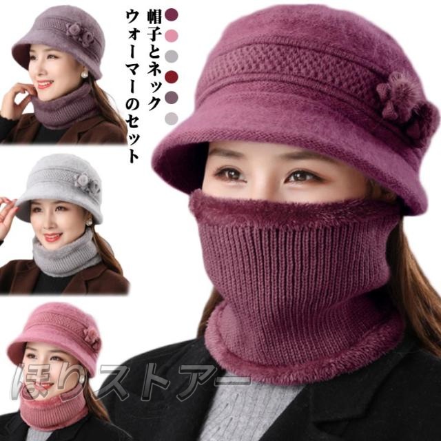 帽子とネックウォーマーのセット レディース ニット 帽子 バケット ハット 婦人帽 おばあちゃん 防寒 防風 秋冬 ふわふわ 折りたたみ エレガント カジュアル 祖母 母 自転車 アウトドア プレゼント