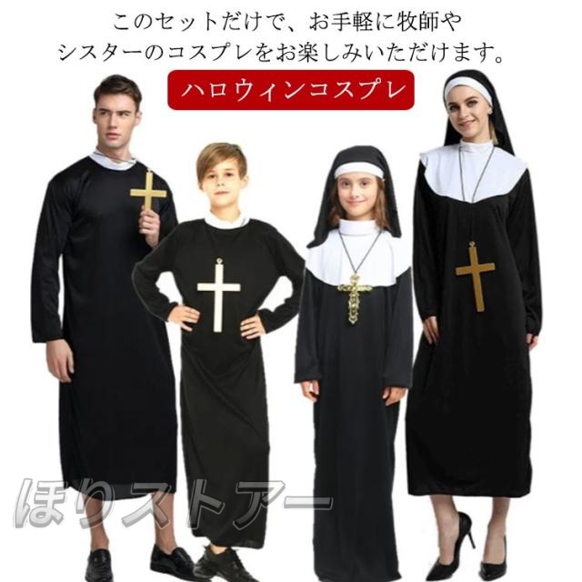 ハロウィン コスプレ 衣装 牧師 修道女 シスター 変装 仮装 クルス 十字架 ベール 大人用 子供用 キッズ メンズ レディース 男の子 女の子 修道士 聖女 コスチューム コスプレ衣装 パーティー イベント セット Cosplay 大きいサイズ