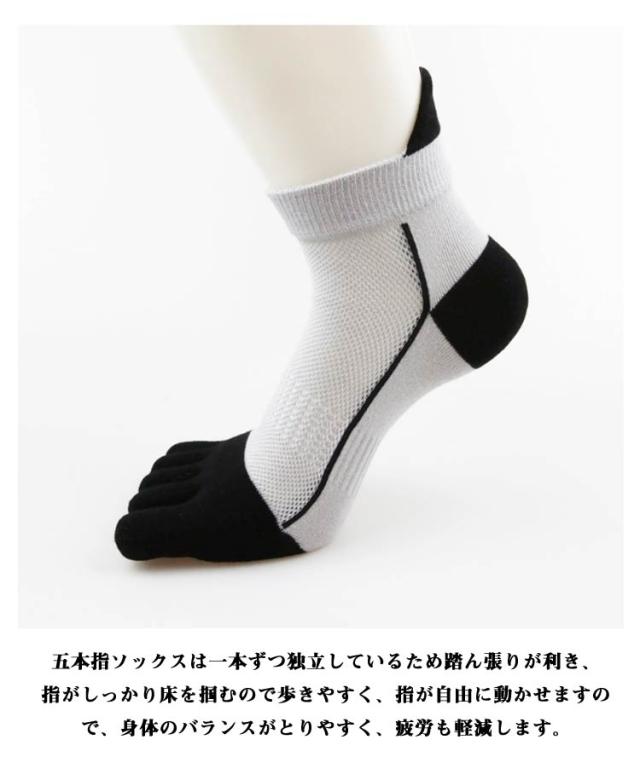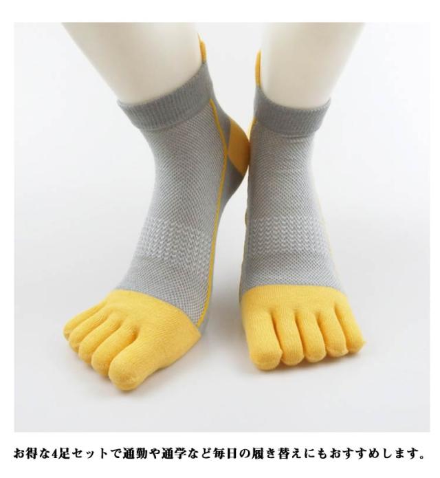 | 五本指ソックスは一本ずつ独立しているため踏ん張りが利き、指がしっかり床を掴むので歩きやすく、指が自由に動かせますので、身体のバランスがとりやすく、疲労も軽減します。 五本の指でしっかり地面をとらえ、蹴りだしの瞬発力や着地の安定性も高く設計されています。スポーツ分野にも愛用者多数! 指の部分が立体構造になっているので指部分の締め付けがなく、しっかり指にフィットしてます。快適感UP 素材に上質のコットンを使用し、速乾メッシュデザインにより不快感を徹底除去!通気性がよく防臭性に優れた蒸れづらいデザイン。夏場のムレやニオイ、水虫などの足のトラブルにも効果的です。 耐久性を高めながら通気性と快適性を追求したくるぶし丈の靴下です。 ランニングだけでなく日常生活はもちろん、遠足、登山、ゴルフやトレッキングなど様々なアウトドアスポーツにもご使用いただけます。 ストレッチがある素材を使っており伸縮性が良く、優れた履き心地を実現しております。 お得な4足セットで通勤や通学など毎日の履き替えにもおすすめします。 | |