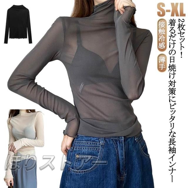 長袖 シアートップス 接触冷感 ハイネック レディース クール冷感 紫外線対策 40代 ボトルネック トップス UV対策 トップス UVカット シアートップス シースルー 冷房対策 レイヤード インナー セクシー 肌見せ きれいめ ミセス 20代 30代 シアー 50代 送料無料 大きいサイズ