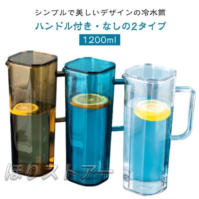 冷水ポット 冷水筒 麦茶 1200ml 麦茶ポット 冷水ボトル ハンドル付き・なし2タイプ 冷蔵庫 スリム アクリル製 プラスチック ウォーターカラフェ ウォーターピッチャー 水差し ピッチャー 食洗機対応 洗いやすい シンプル