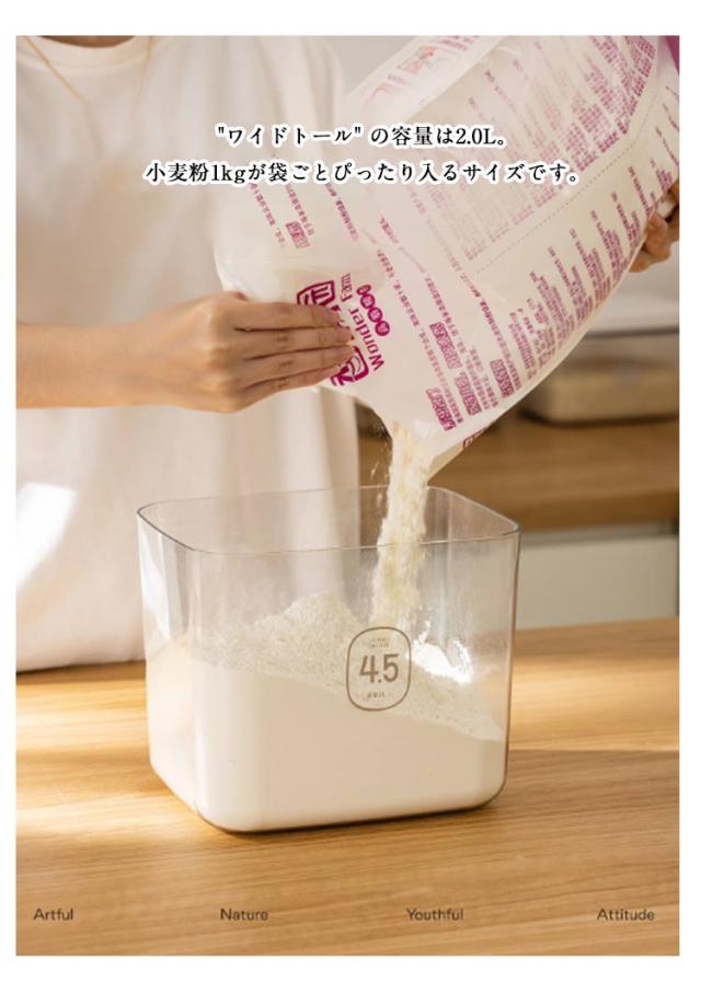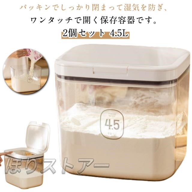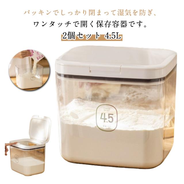 2個セット コンテナー ワイドトール 保存 キャニスター 砂糖 4.5L 2個セット ストッカー 麦茶パック 保存容器 ワンタッチ 小麦粉 調味料 容器 ケース 調味料入れ ストック 便利グッズ 収納 キッチン パッキン付 プラスチック フードストッカー ホワイト クリア 透明
