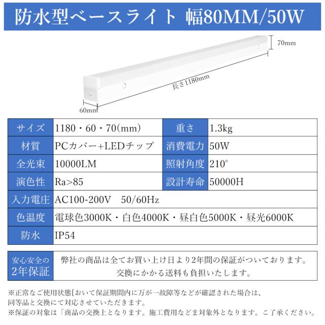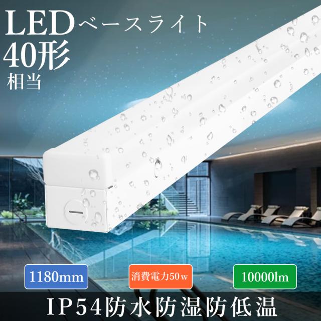 LED ベースライト 屋外 トラフ型 40形 2灯相当 消費電力50w IP54 防雨 防湿 防塵 LED蛍光灯 一体型照明器具 LED照明器具 シーリングライト 天井照明 直管型 LED蛍光管40w形 瞬時点灯 チラツキなし 湿気 水気対応 冷藏庫 冷凍室 軒下 浴室 トイレ 施設照明 配線必要