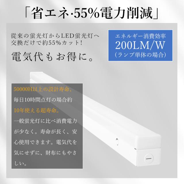 IP54防水防塵仕様で、入浴場や冷凍室、工場など幅広い環境に対応可能。-40℃〜45℃の温度範囲に対応し、スリム設計で狭い場所にもすっきり設置できます。高演色性で自然な光を実現し、スタイリッシュなデザインは空間に美しく調和。省エネ・環境配慮型で、長く快適にご使用いただけるLED照明です。