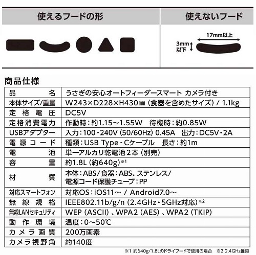 マイク・スピーカー・カメラ内蔵。1日4回まで給餌可能です。