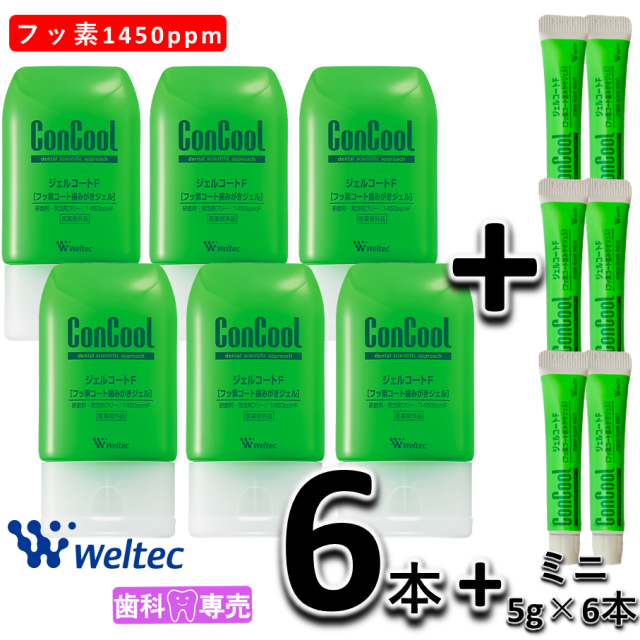 ウエルテック コンクール ジェルコートF 90g 6本(6個)セット+ ミニ6本(5g) フッ素コート 歯磨きジェル