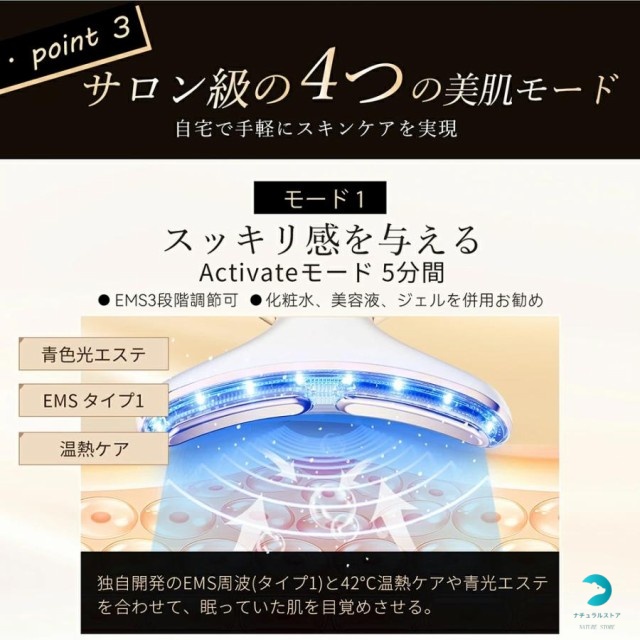 4つの専門モードを搭載。様々な肌のお悩みに応えます。若々しく輝きと弾力のある美しい肌を実現する ems 美顔器 です。