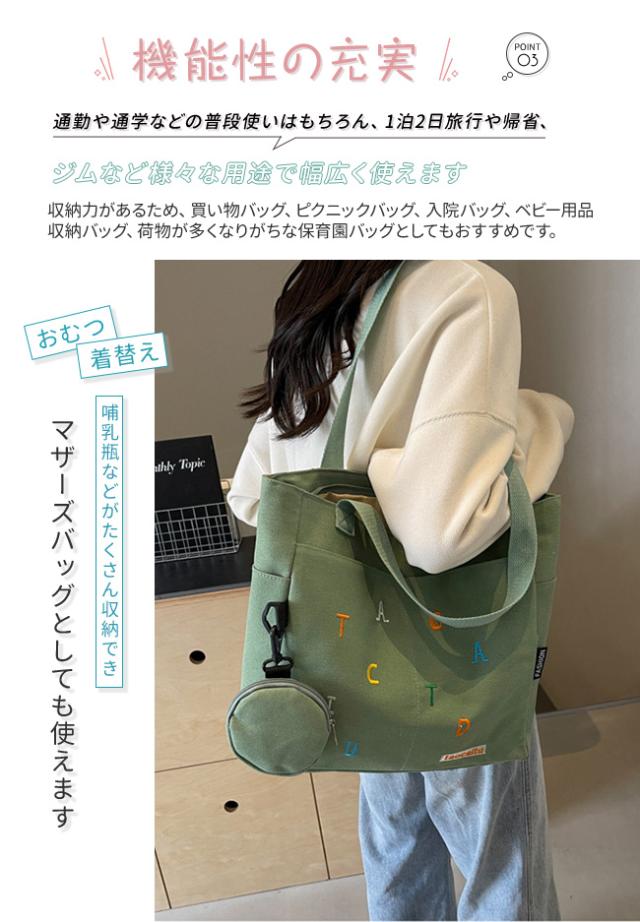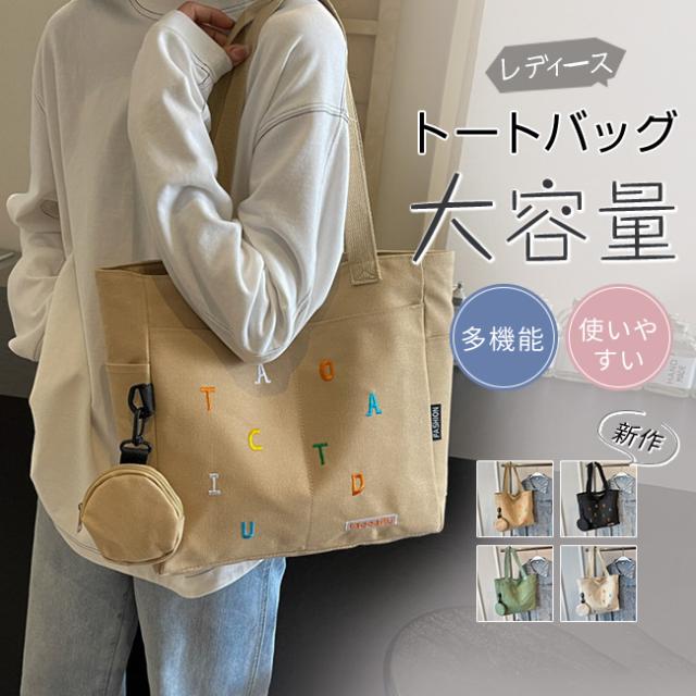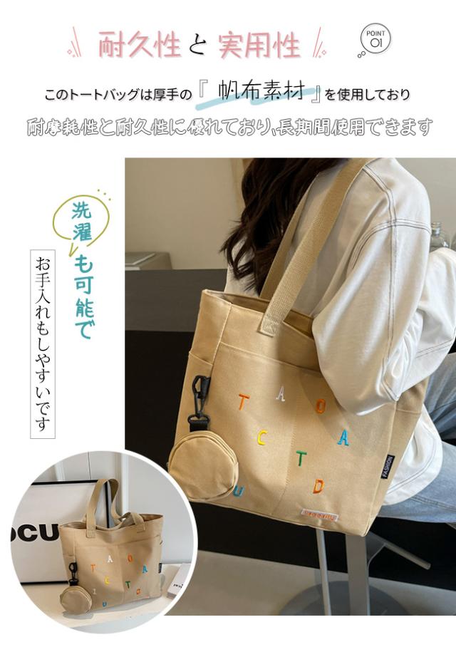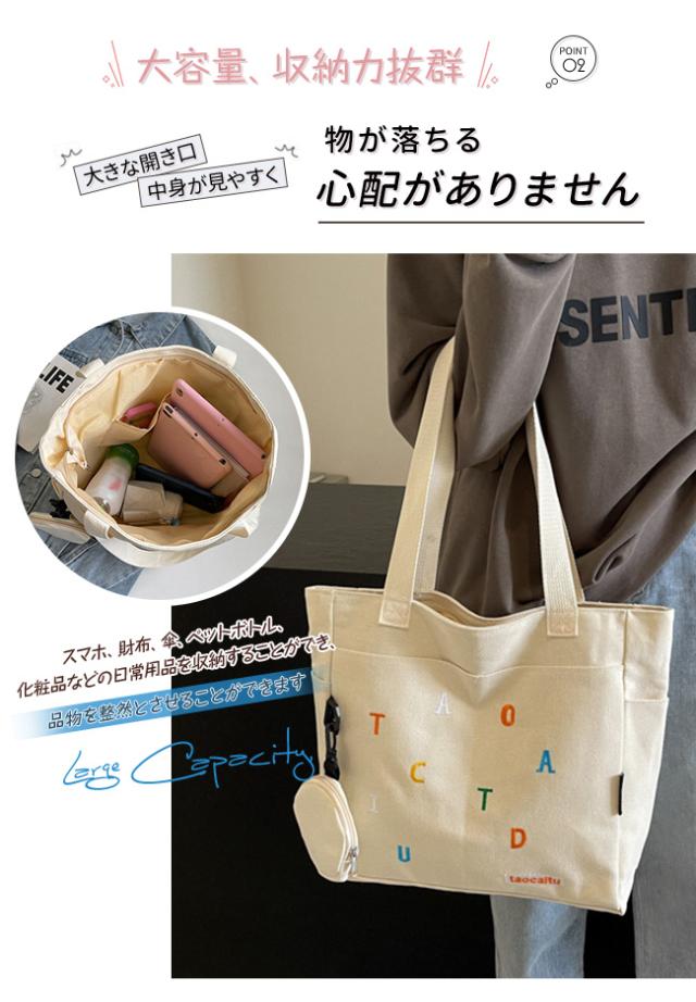 秋新作 人気 トートバッグ キャンバス地 レディース 帆布バッグ 丸型コインケース付き ハンドバッグ 肩掛け 手提げバッグ 大容量 軽量 可愛い 多機能 通学 通勤 旅行 プレゼント