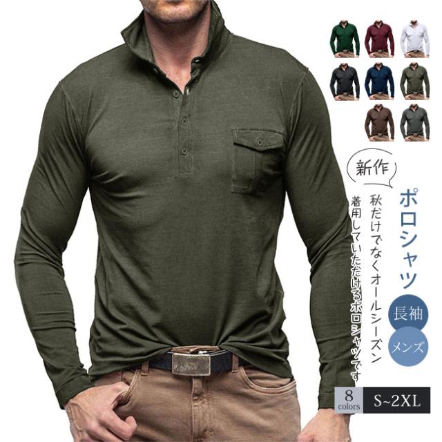 メンズ ポロシャツ 長袖 スポーツポロシャツ ポケット付き 通気 ゴルフウェア アウトドアウェア 日常着 カジュアル 春秋服