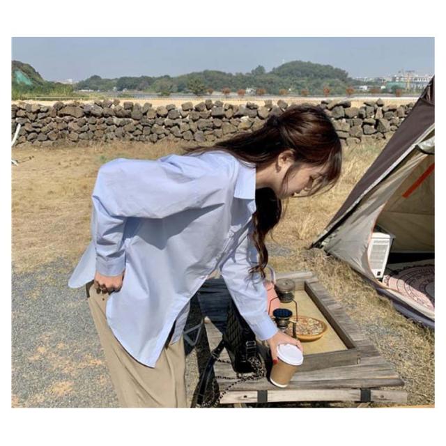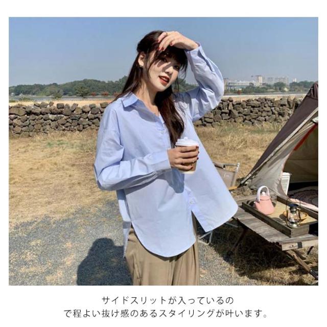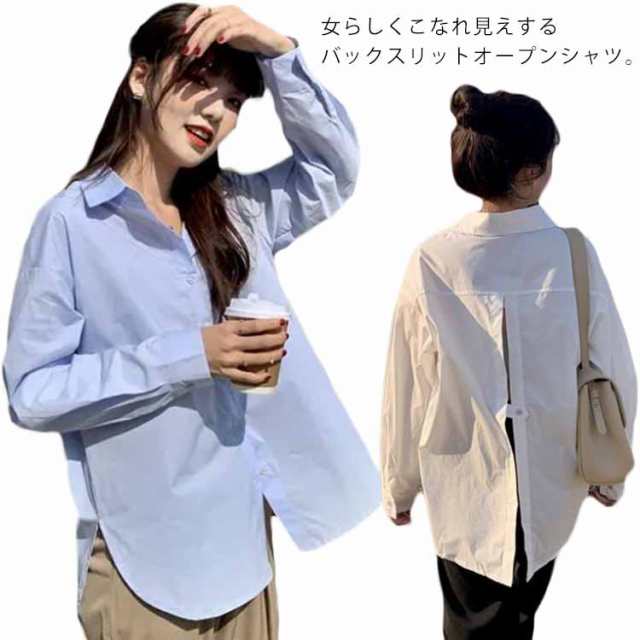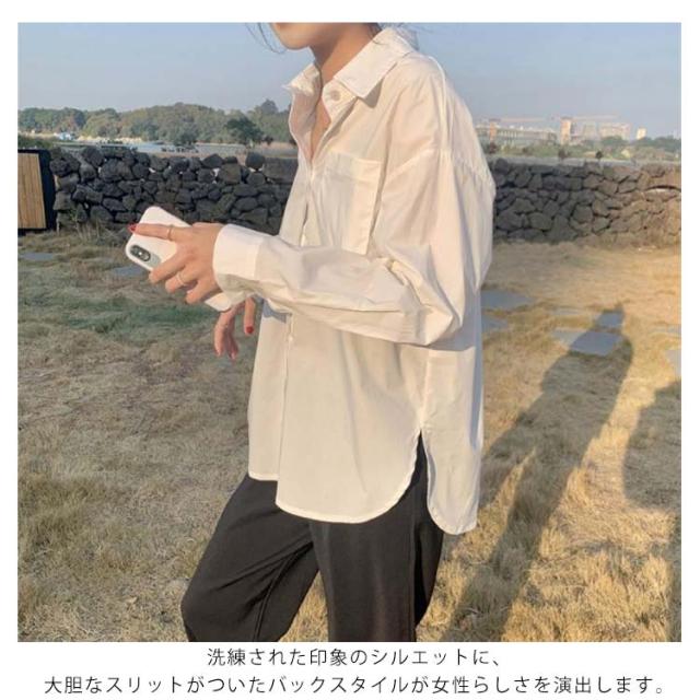 シンプル ブラウス シャツ バックスリット 長袖 トップス 羽織り ラウンドテール 無地 シャツブラウス レディース バックスリット 長め サイドスリット スキッパー ロングシャツ 大人カジュアル ゆったり ドロップショルダー チュニック
