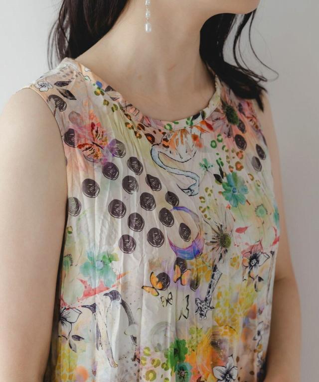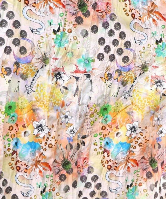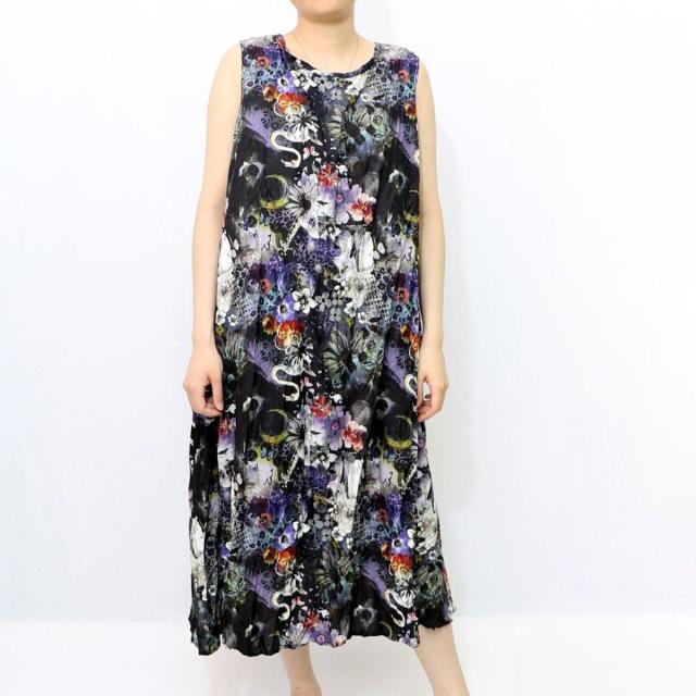 ScoLar スカラー 花とアニマル柄のクリンクル加工ワンピース