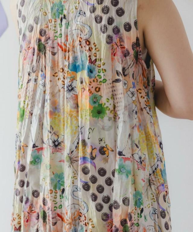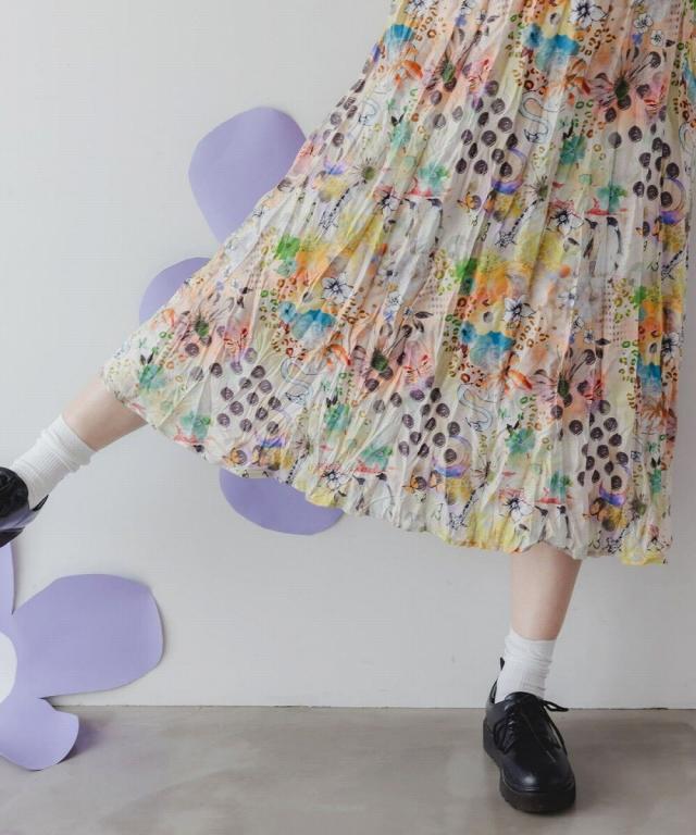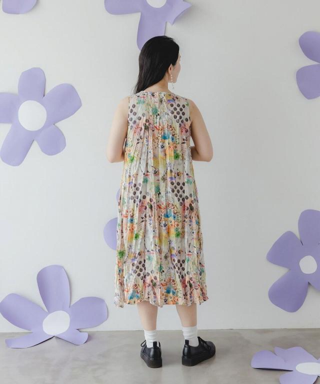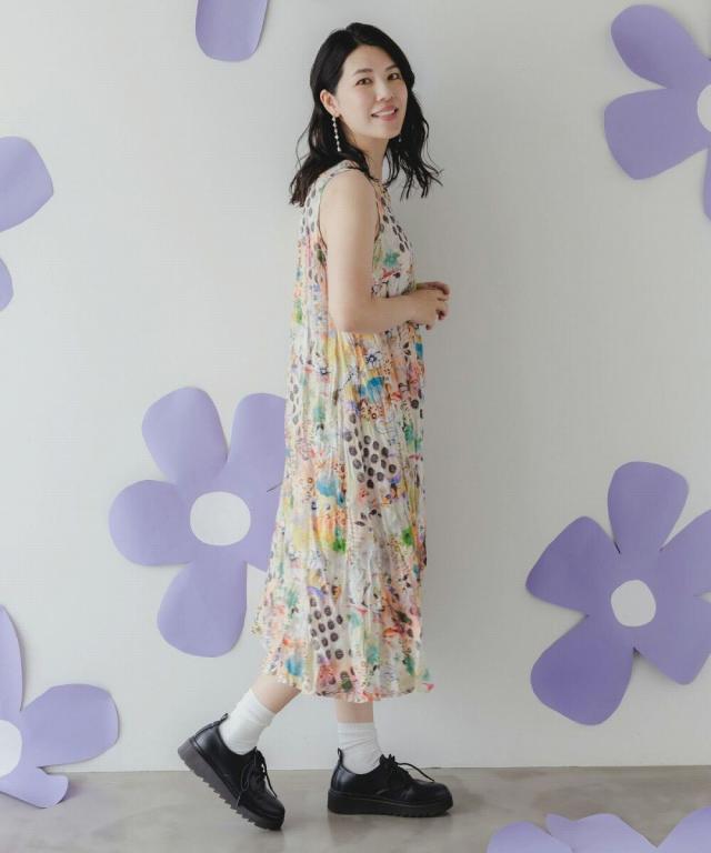 一枚でこなれた雰囲気漂よう、クリンクル加工が施されたにぎやか総柄ワンピが登場!