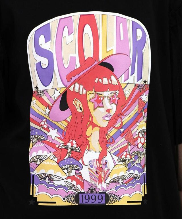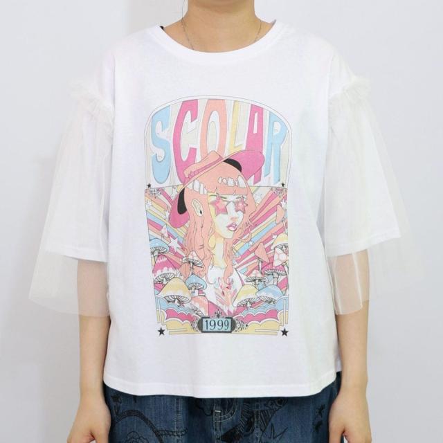ScoLar スカラー キノコ柄とアニメ風女の子チュール重ねTシャツ
