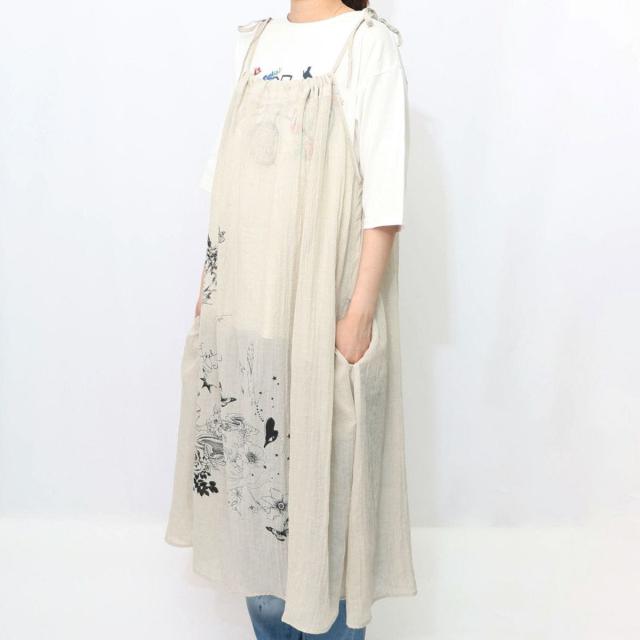 肩紐は結んで長さ調節がしていただけるのでどんな身長の方にもジャストサイズで着ていただけます。