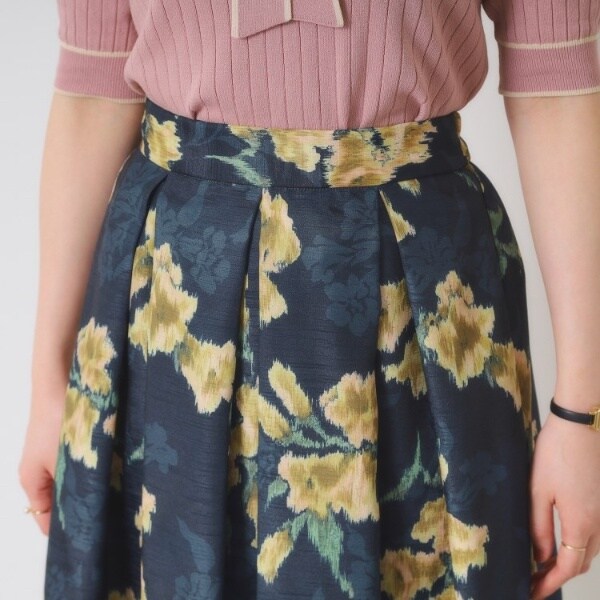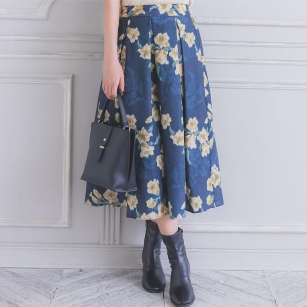 深みのあるカラーリングの花柄が秋の装いをクラスアップしてくれます。
