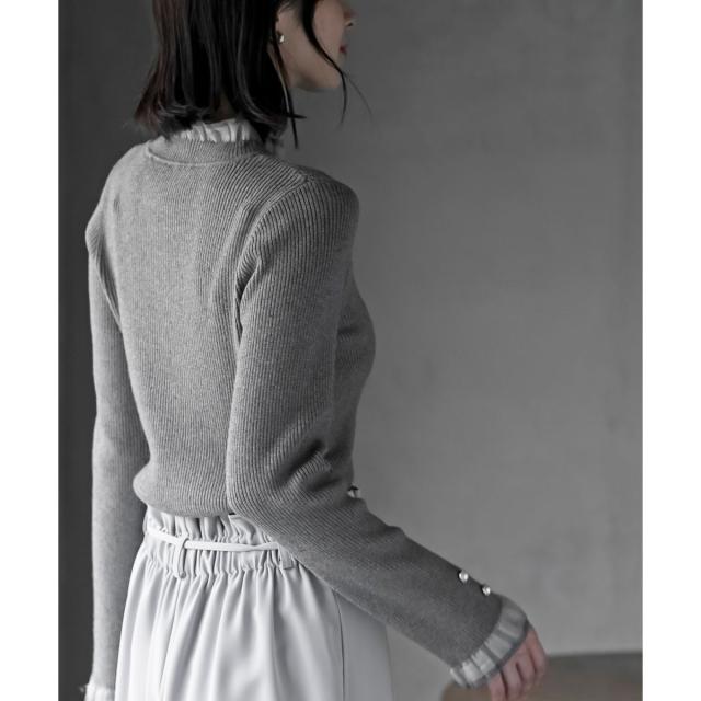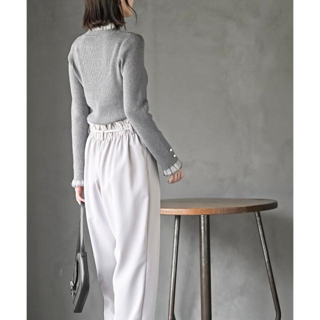 伸縮性のあるリブニットでストレスフリーにご着用いただけます。