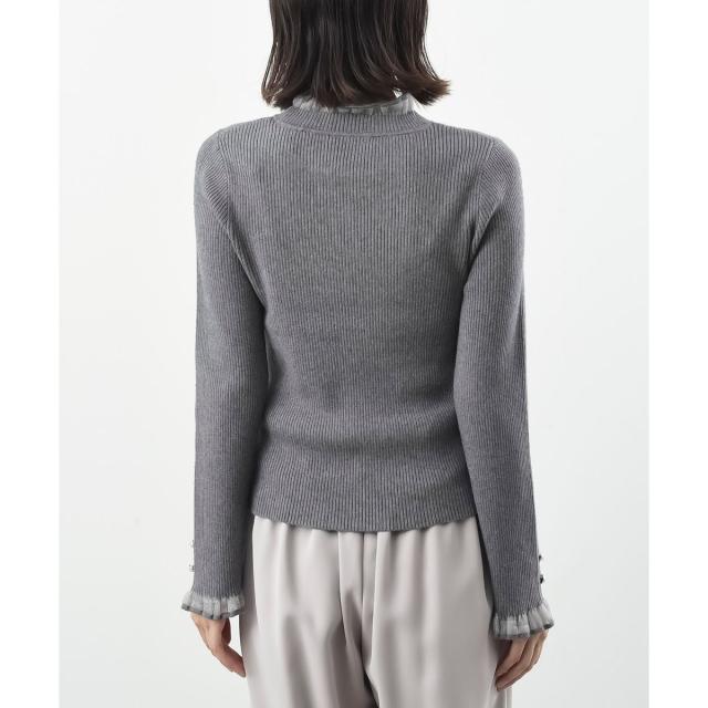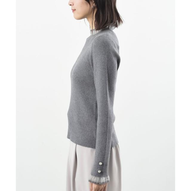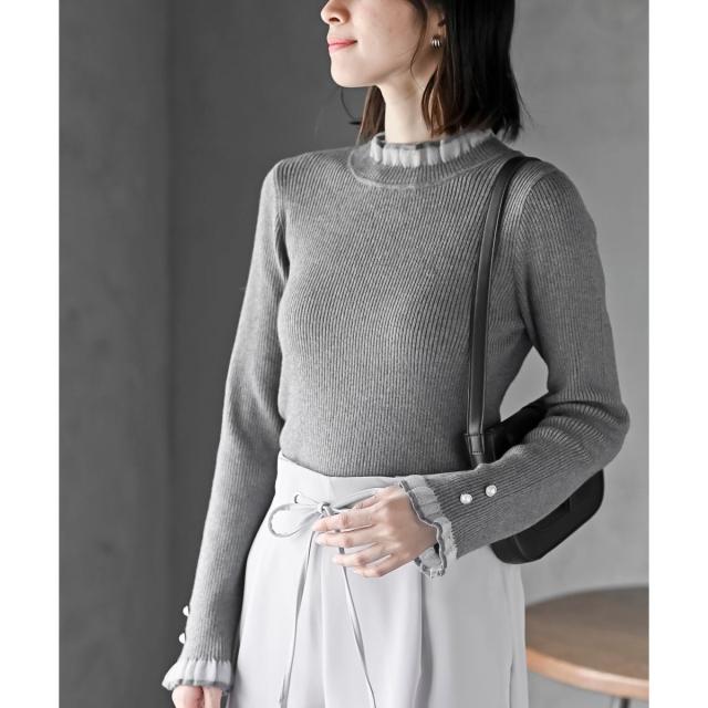 襟元と袖口をシアー素材で切り替えた女性らしいニットプルオーバー。