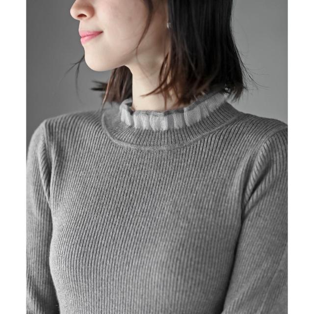 シアー切り替えで女子力上がるニットトップス