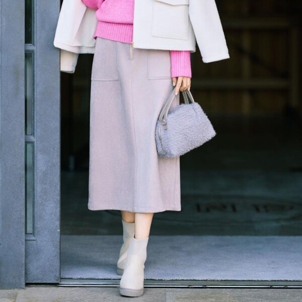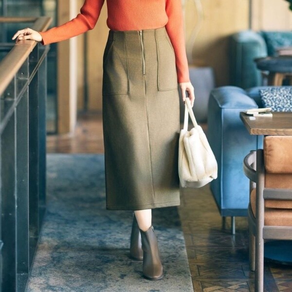 【洗濯機可】上品できれい見え フェイクスエード ナロースカート