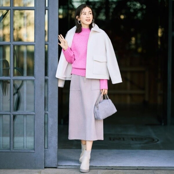冬は、ハイゲージニットを合わせたきれいめスタイルがおすすめ。