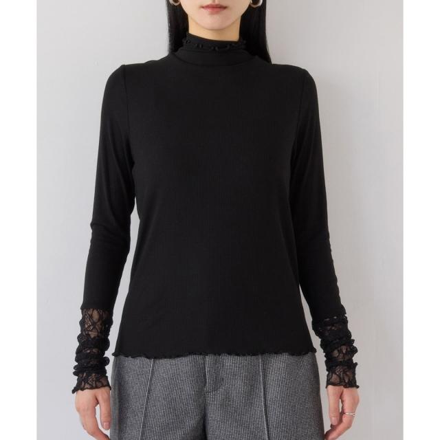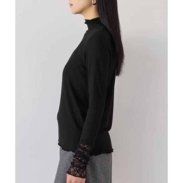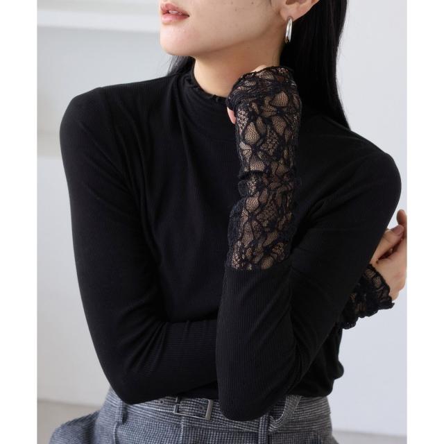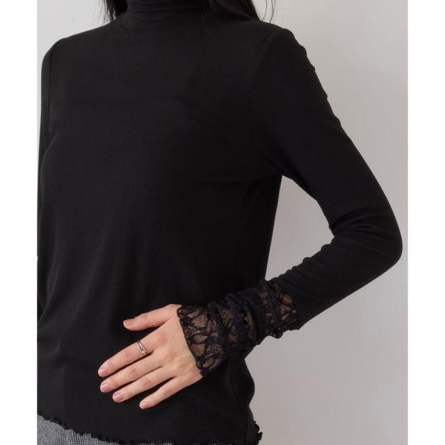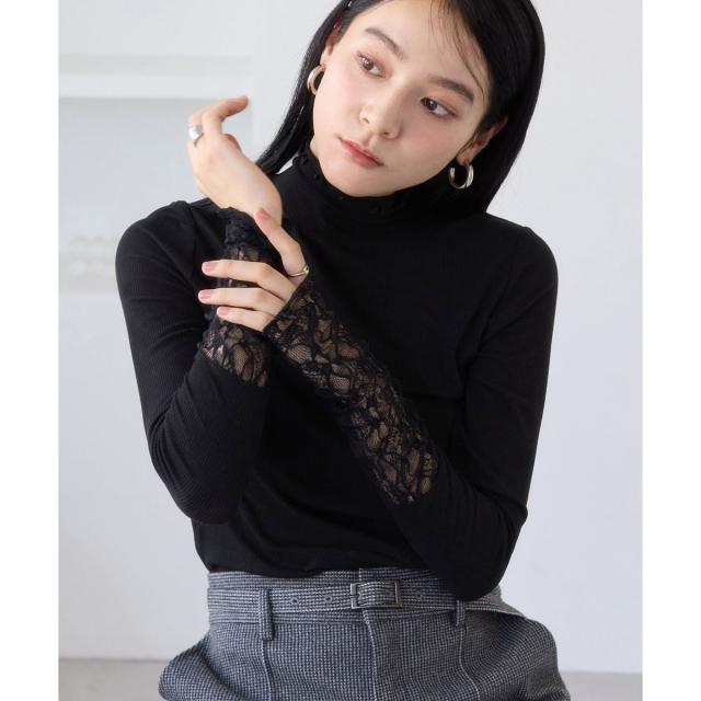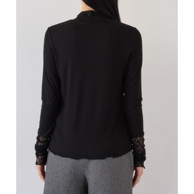 ・ネック周りのデザインや袖口のレース切替がエレガントなトップス。