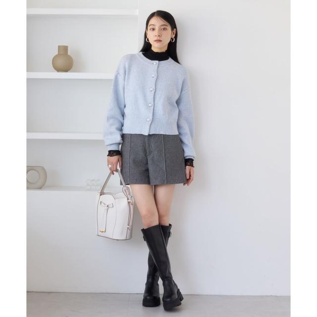 ジャケットやカーディガンのインナーに袖口クシュクシュをあえて出してニュアンス袖として使用するとレイヤード感あるスタイリングに。
