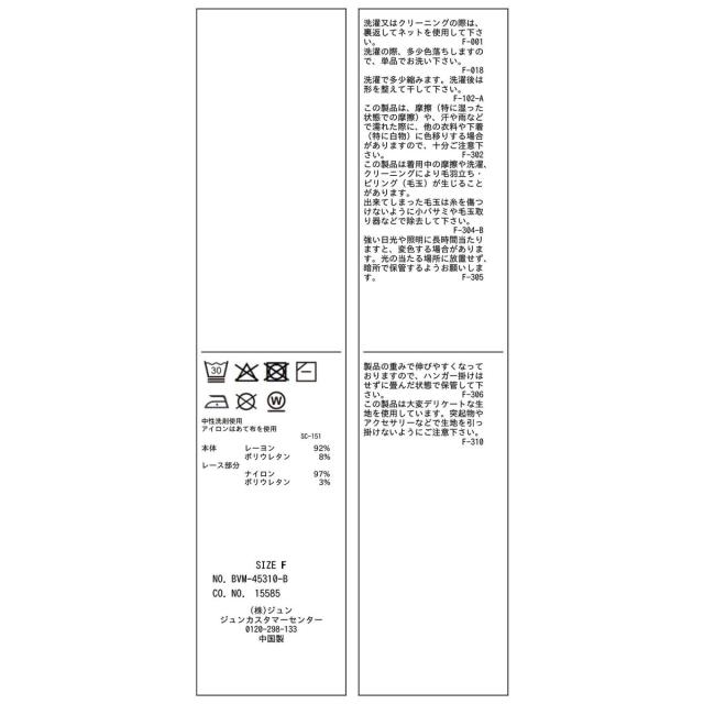 ■素材:(本体) レーヨン 92% ポリウレタン 8% (レース部分) ナイロン 97% ポリウレタン 3%