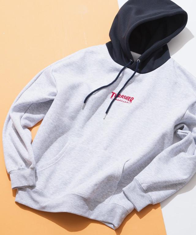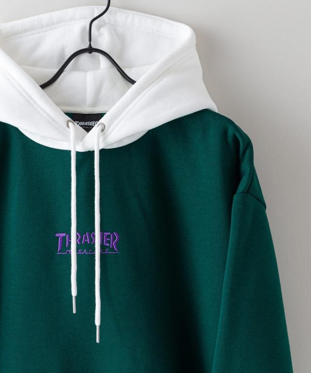 スラッシャー(THRASHER)/【THRASHER】裏起毛 胸刺繍 フード配色 プルオーバー パーカー