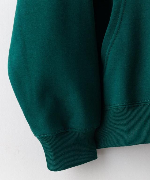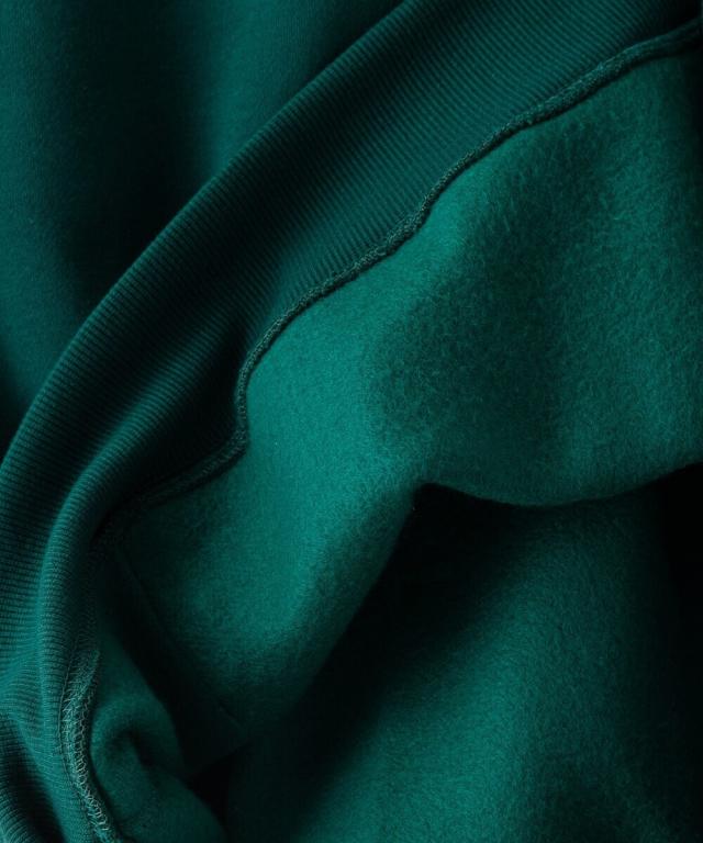 ポリエステルの強度と速乾性、コットンの柔らかさや伸縮性を合わせ持った肉感のあるTC裏起毛素材を使用。綿の風合いを残しながらポリエステルの機能性があり保温性にも優れています。シワになりにくいため、お手入れもしやすく扱いやすい素材に仕上がっています。