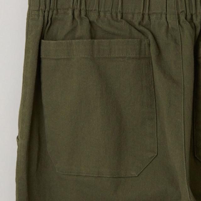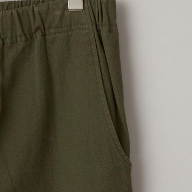 柔らかな素材感と動きやすさ、ウエストはゴム仕様に加えて内側の紐で細かな調整が可能なため、