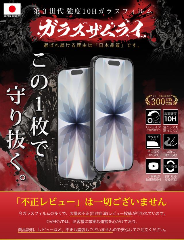 iPhone17 全面保護 ガラスフィルム 保護フィルム フィルム 全面吸着タイプ 10H ガラスザムライ アイフォン iPhone 17 全面 保護 液晶保護フィルム OVER`s オーバーズ 黒縁 TP01
