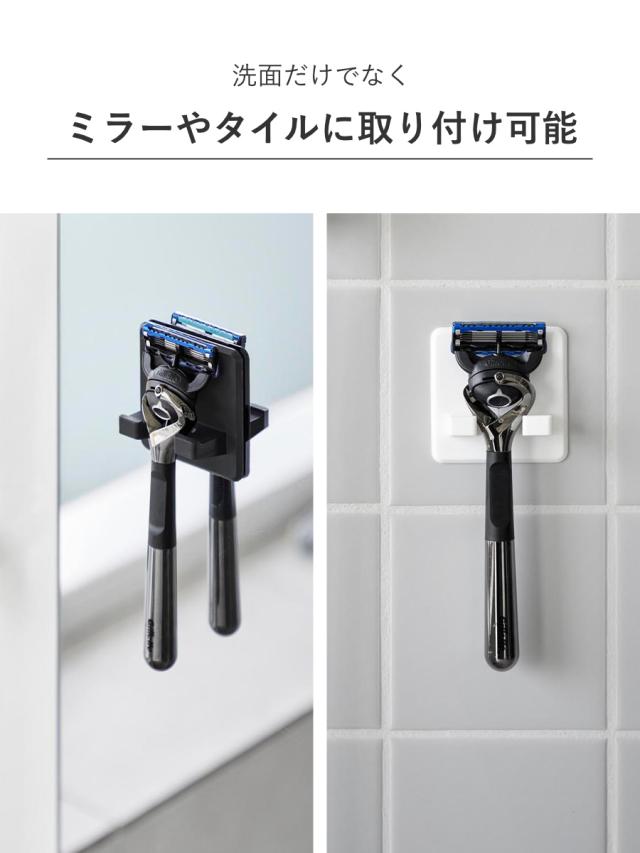 シリコーン吸盤で貼り付けるだけで設置できるシェーバーホルダーです。浮かせて収納できるので、水洗いした後も水切れがよく、シェーバーがぬめらず衛生的です。