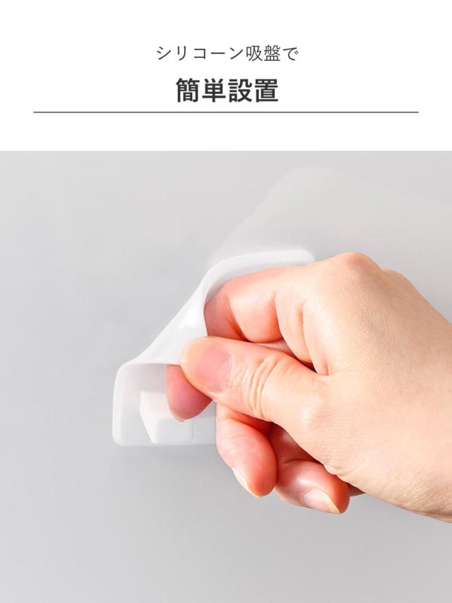 シリコーン製の吸盤で、壁に穴をあけずに設置できます。柔らかい素材で付け外しもお手入れも簡単です。