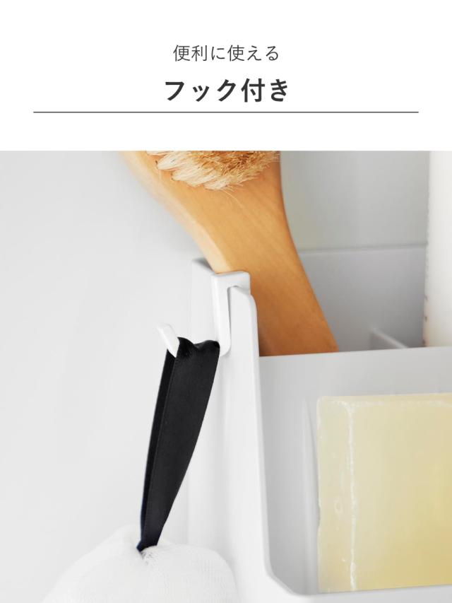 便利なフック付きで、泡立てネットなどのバス小物も掛けて収納できます。