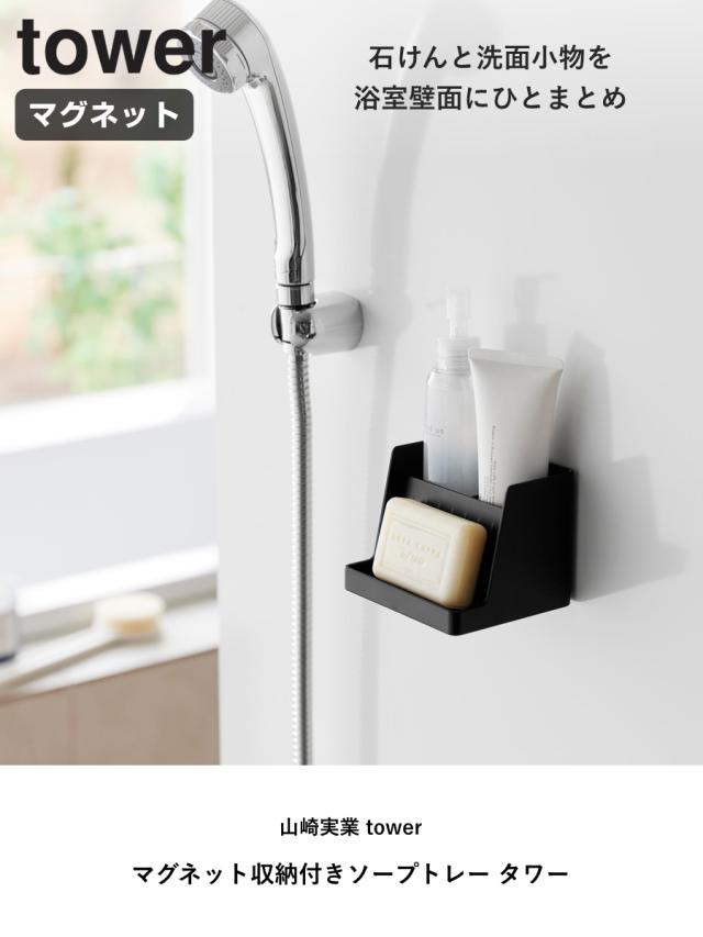 山崎実業 tower マグネット収納付きソープトレー タワー ( 4903208103169 タワーシリーズ ソープトレー マグネット 磁石 収納付き ソープ トレー 収納 ラック 浴室収納 石鹸 ソープディッシュ ディスペンサー チューブ )