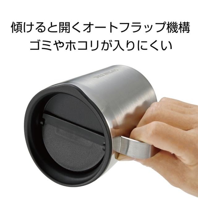 傾けると自動で開く専用フタ付きでオフィス使用時にもゴミが入りにくい。