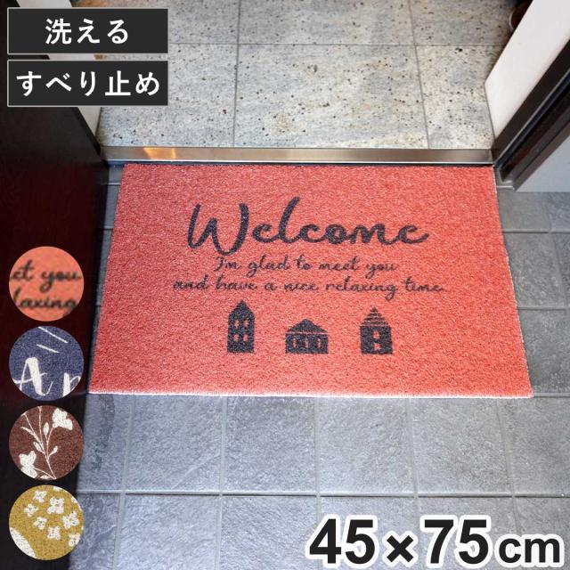 玄関マット ふわふわ玄関マット 屋内 45×75cm ( 屋外 屋外兼用 泥落とし 洗える 水洗い 滑り止め マット 薄手 幅75cm おしゃれ カフェ ベランダ デッキ テラス 玄関 PVC素材 外用 )