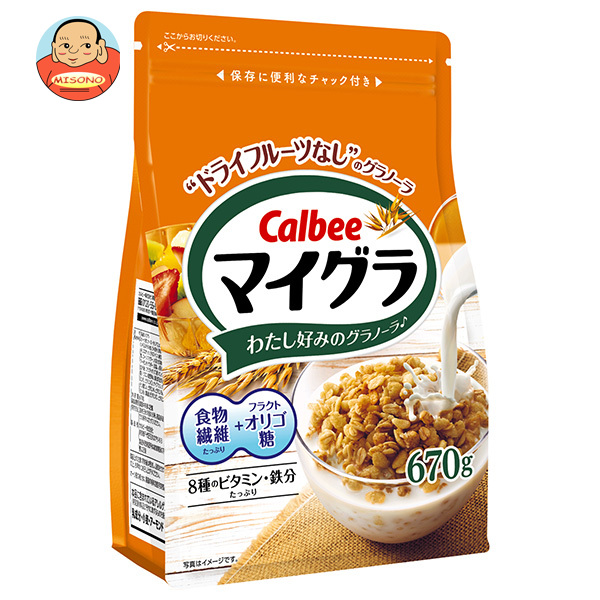 カルビー マイグラ 670g×6袋入 メーカー 問屋直送| 送料無料 シリアル グラノーラ 食物繊維 オリゴ糖 鉄分 ビタミン