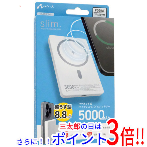 【1日と三太郎の日はポイント3倍!!】送料無料 【新品(開封のみ)】 エアージェイ マグネット式 ワイヤレスモバイルバッテリー 5000mAh MBM-5000S WH ホワイト【ゆうパケット対応】