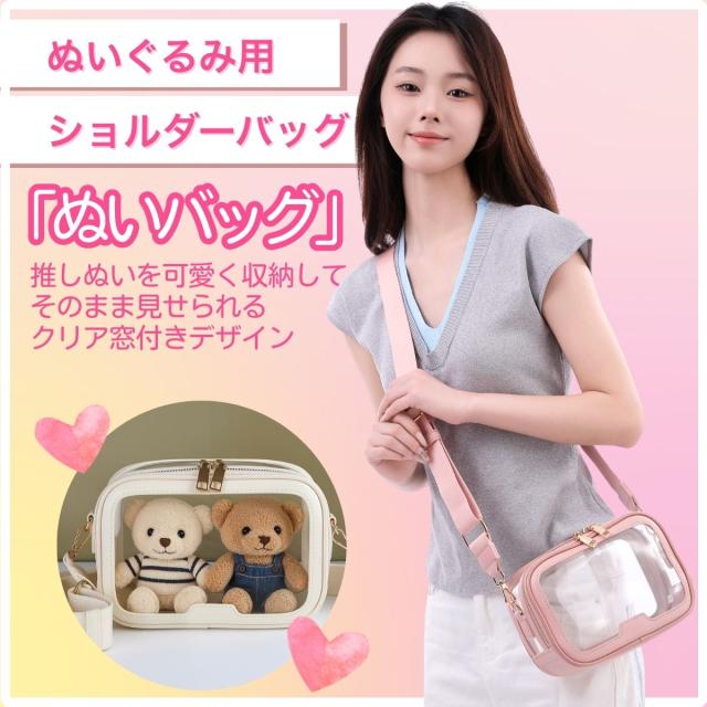 推し活 ぬいバッグ ショルダーバッグ 推しぬい 透明窓付き クリアバッグ レディース 斜めがけ 肩掛け 幅広ストラップ 着脱式 軽量 アクスタ ぬいぐるみ グッズ収納 ライブ フェス イベント