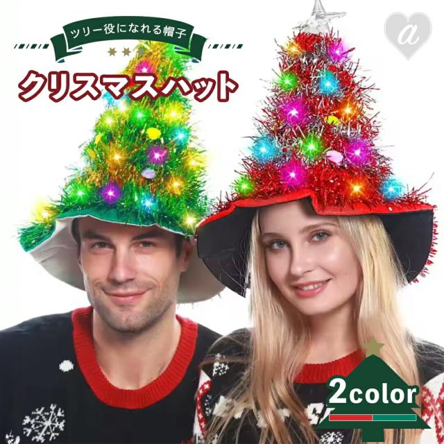 【置き配配送】 クリスマスハット ツリー帽子 LED 2カラー ツリー役になれる帽子 光る帽子 カラフル キラキラ 電飾 クリスマス ホリデー グッズ パーティー クリスマスツリー とんがり帽子 ハット 華やか おしゃれ デコレーション 飾り付け 室内 グッズ 雑貨