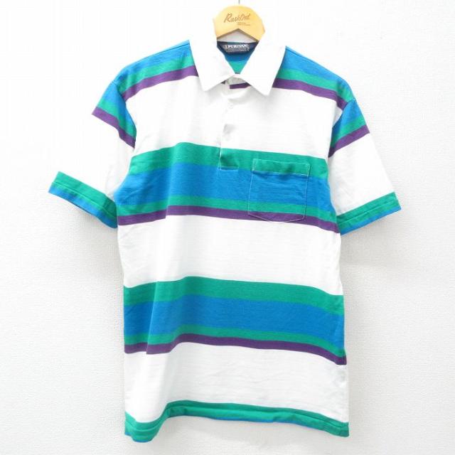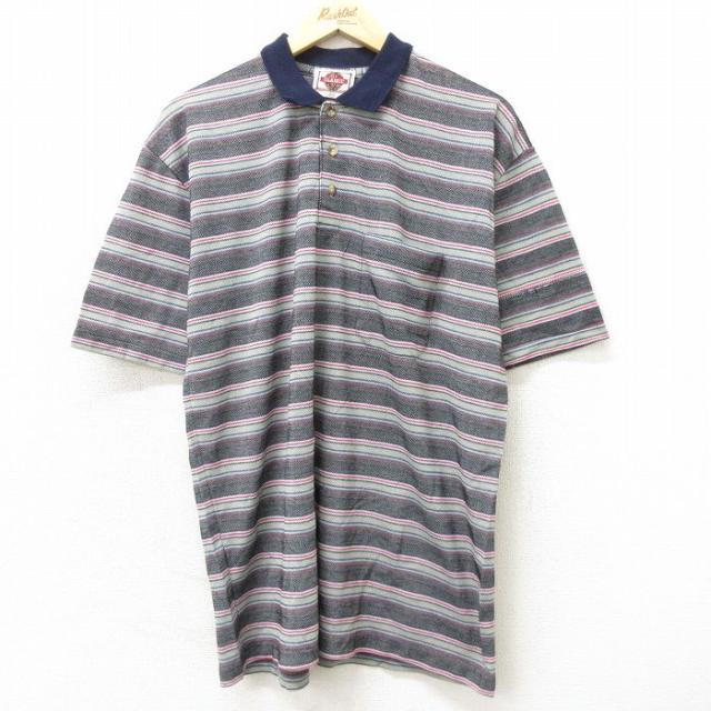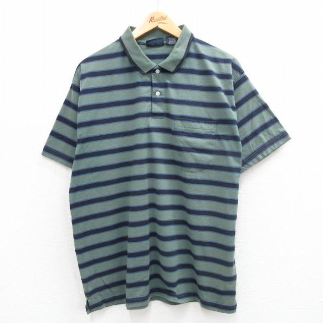 【商品名】 XL★古着 ピューリタン 半袖 ポロ シャツ メンズ 00年代 00s 薄黄他 ボーダー